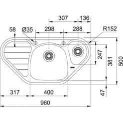 Franke Spark – Spüle OLL 611-79, 960×500 M, Edelstahl 101.0617.552