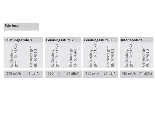 A-bewertete Luftschallemission bei maximaler Geschwindigkeit im Normalbetrieb: 60,00 dB(A) re 1 pW - A-bewertete Luftschallemission im Betrieb auf der Intensivstufe/ Schnelllaufstufe: 71,00 dB(A) re 1 pW