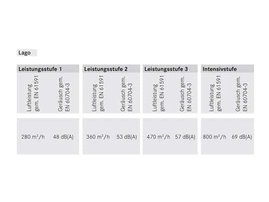 - Luftleistung: 800 m³/h, 69 dB(A)