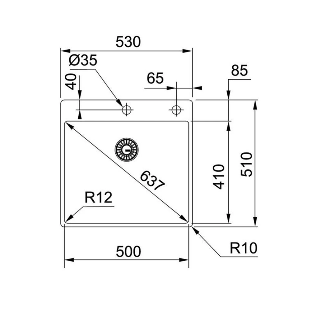 - Spülenmaß: B 530 x T 510 mm