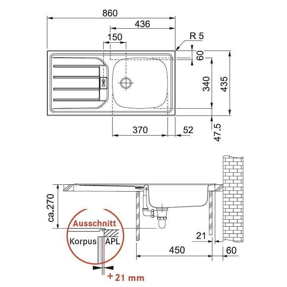 Franke Einbauspüle Edelstahl seidenmatt Euroset ESN 614 NOVA 86 x 43,5 cm
