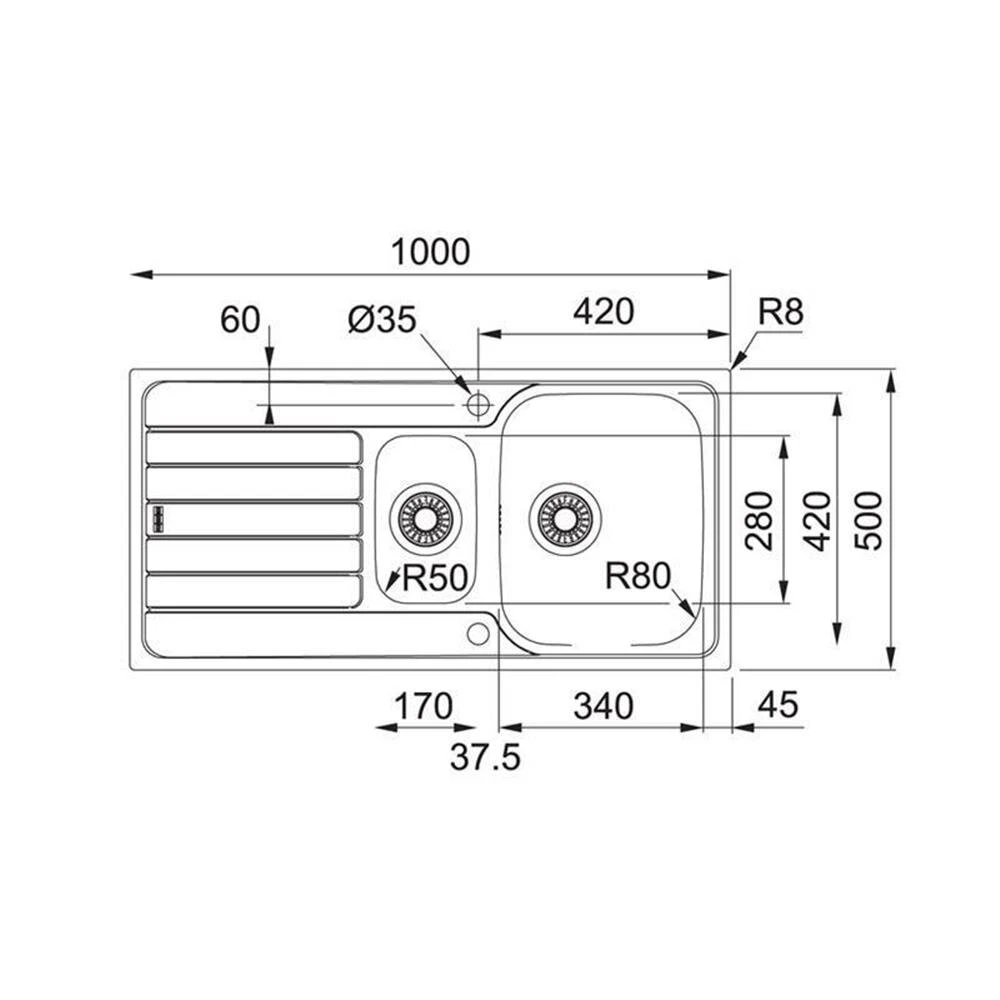 - Beckenabmessung: 340 x 420 x 160 mm und 170 x 280 x 80 mm