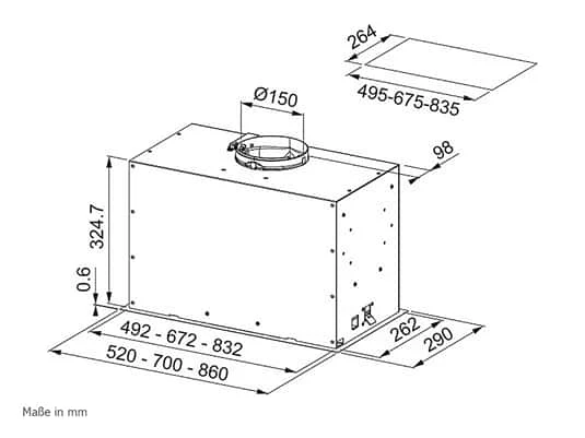 - Sicherheitsabstand zum Gaskochfeld: mind. 53 cm