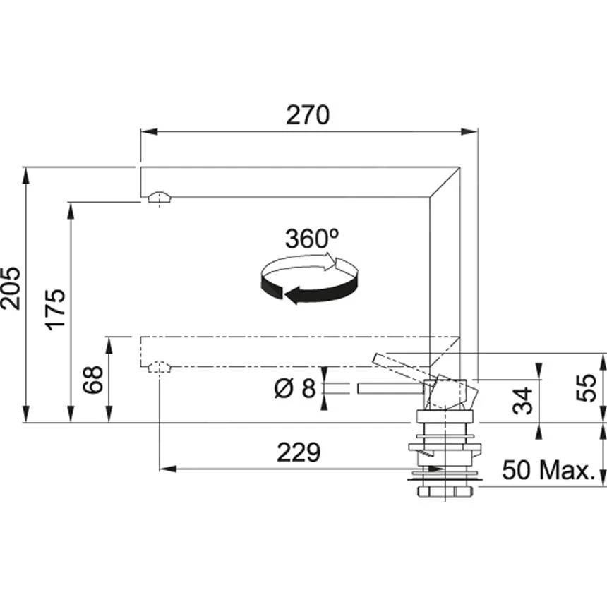 Die Batterie braucht 2 Löcher mit dem Durchmesser von 35 mm an der Spüle / in der Arbeitsplatte