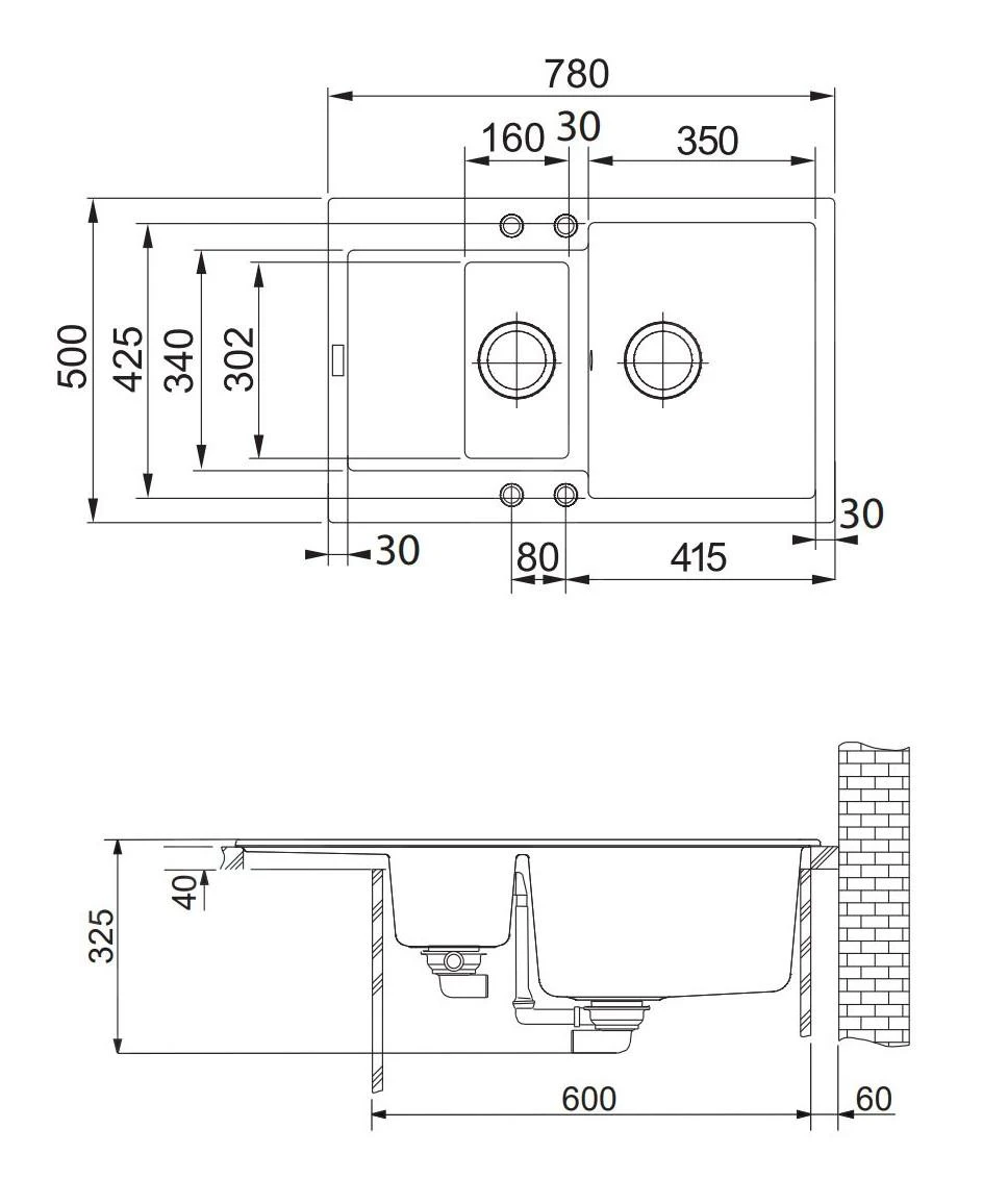 - 2 Spülen 350 x 425 x 200 mm