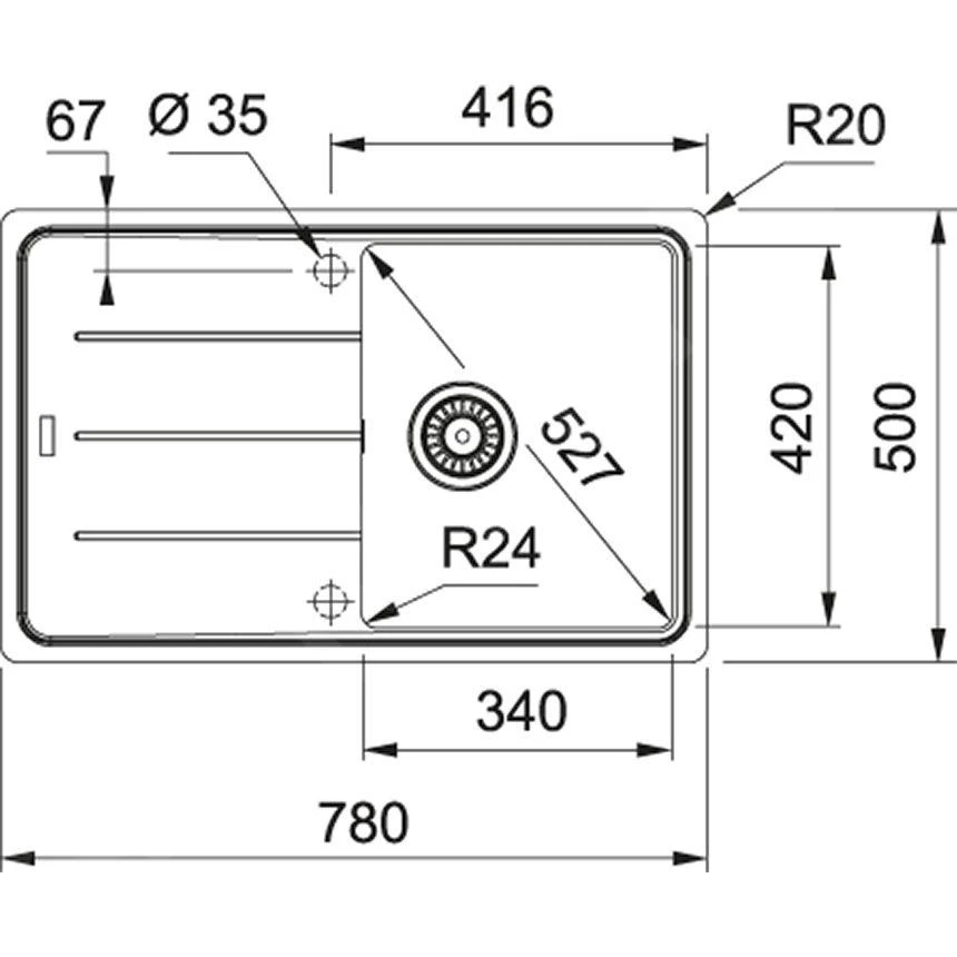 - Spüle: 340 × 420 × 200 mm