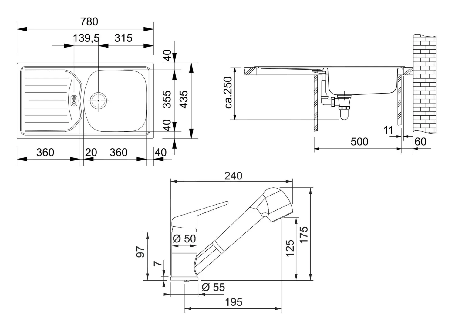 - Siphon 6/4″ mit Spülmaschinenabzweig