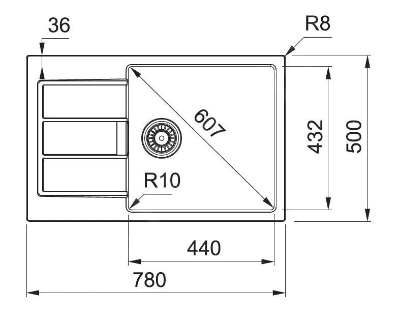 - reversible Abtropffläche, kann sowohl rechts als auch links platziert werden