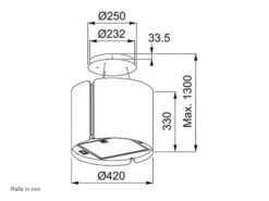 Durch ihre spielerische Formgebung und mit ihrem farbenfrohen Design ist sie äußerst dekorativ und schafft einen fließenden Übergang zwischen Koch- und Wohnbereich. Die sich klassisch leicht nach oben verjüngende Kaminform verleiht der Wandhaube nicht nur ihr charakteristisches Erscheinungsbild, sondern reduziert auch die Absauggeräusche – bei einer maximalen Lüfterleistung von 630 m³/h liegt der Schallpegel bei leisen 65 dB.