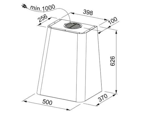 - Gerätemaße: 626 x 500 x 370 mm (H x B x T)