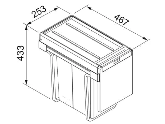 - Maße: 253 x 467 x 433 mm (B x T x H)