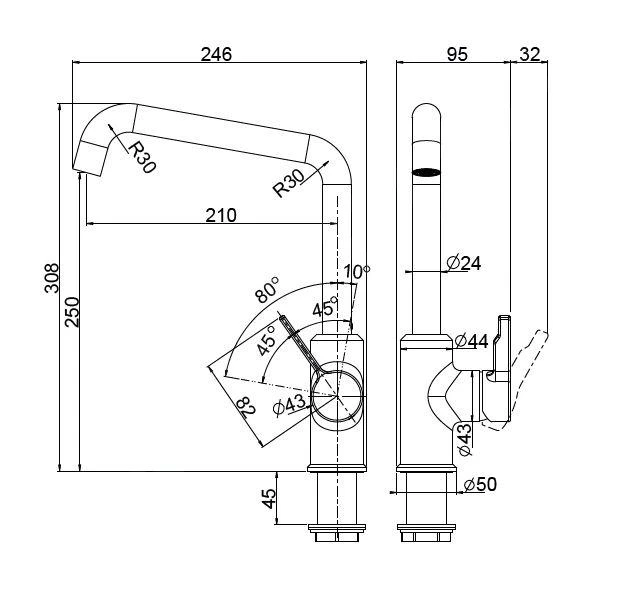 - Armaturhöhe 308 mm