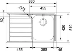 Franke Neptune Plus – Spülbecken Edelstahl NPX 611/2, 860×510 Mm 101.0068.368