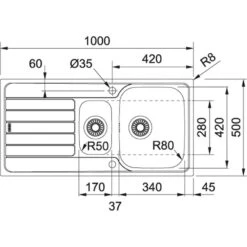 Franke Spark – Spülbecken Edelstahl SKX 651, 1000×500 Mm 101.0504.085